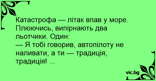 — Я тобі говорив, автопілоту не наливати, а ти — традиція, традиція! ...