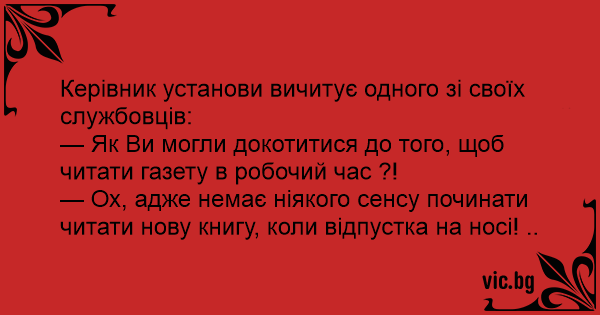 — Як Ви могли докотитися до того, щоб читати газету в робочий час ?!