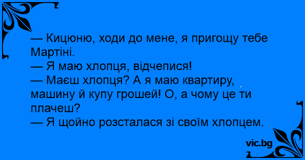 — Кицюню, ходи до мене, я пригощу тебе Мартіні.
