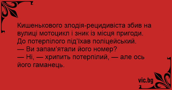 — Ні, — хрипить потерпілий, — але ось його гаманець.