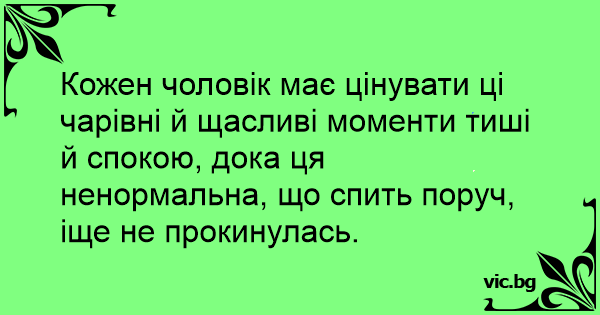 Кожен чоловік має цінувати ці чарівні й щасливі моменти тиші й спокою, дока ця ненормальна, що спить поруч, іще не прокинулась.
