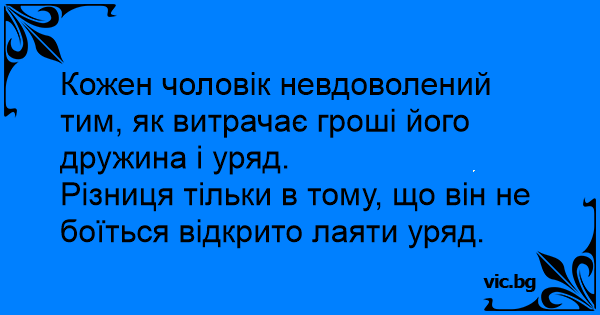 Кожен чоловік невдоволений тим, як витрачає гроші його дружина і уряд.