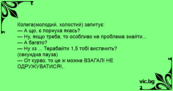 — От kуpbo, то це ж можна ВЗАГАЛІ НЕ ОДРУЖУВАТИСЯ!..