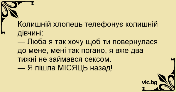 — Люба я так хочу щоб ти повернулася до мене, мені так погано, я вже два тижні не займався сексом.