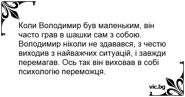 Коли Володимир був маленьким, він часто грав в шашки сам з собою.