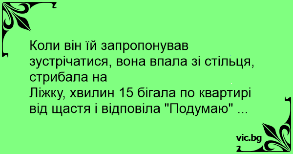 Коли він їй запропонував зустрічатися, вона впала зі стільця, стрибала на