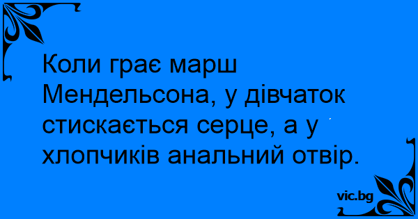 Коли грає марш Мендельсона, у дівчаток стискається серце, а у хлопчиків анальний отвір.