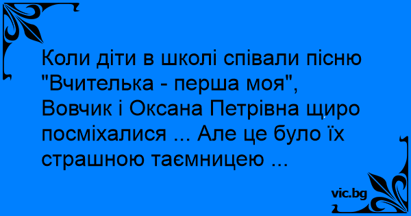 Коли діти в школі співали пісню "Вчителька - перша моя", Вовчик і Оксана Петрівна щиро посміхалися ... Але це було їх страшною таємницею ...