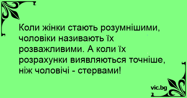 Коли жінки стають розумнішими, чоловіки називають їх розважливими. А коли їх розрахунки виявляються точніше, ніж чоловічі - стервами!