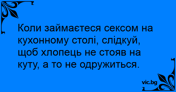 Коли займаєтеся сексом на кухонному столі, слідкуй, щоб хлопець не стояв на куту, а то не одружиться.