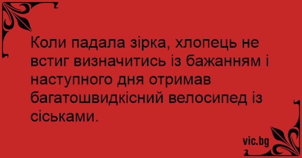 Коли падала зірка, хлопець не встиг визначитись із бажанням і наступного дня отримав багатошвидкісний велосипед із сіськами.