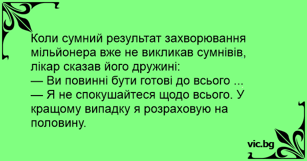 Коли сумний результат захворювання мільйонера вже не викликав сумнівів, лікар сказав його дружині: