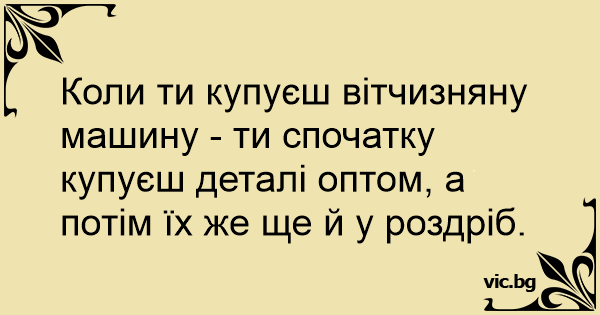 Коли ти купуєш вітчизняну машину - ти спочатку купуєш деталі оптом, а потім їх же ще й у роздріб.