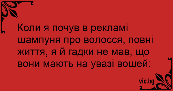 Коли я почув в рекламі шампуня про волосся, повні життя, я й гадки не мав, що вони мають на увазі вошей: