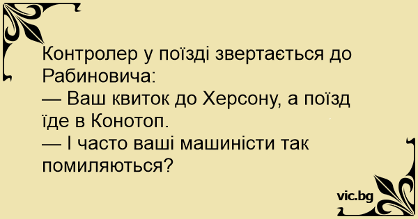 — Ваш квиток до Херсону, а поїзд їде в Конотоп.