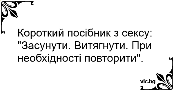 Стислий посібник із сексу: 1. Засунути 2. Висунути 3. За потреби повторити