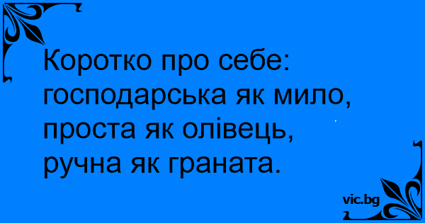 Коротко про себе: господарська як мило, проста як олівець, ручна як граната.