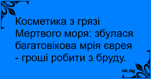 Косметика з грязі Мертвого моря: збулася багатовікова мрія єврея - гроші робити з бруду.