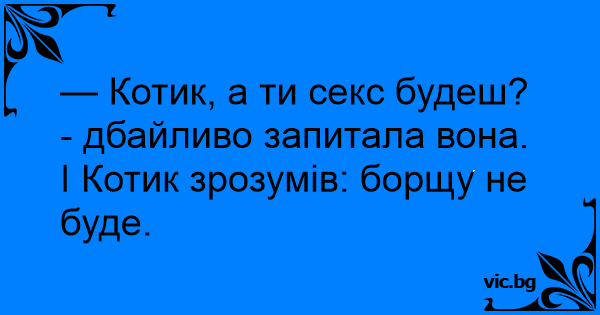 — Котик, а ти cekc будеш? - дбайливо запитала вона.