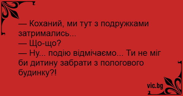 — Ну... подію відмічаємо... Ти не міг би дитину забрати з пологового будинку?!
