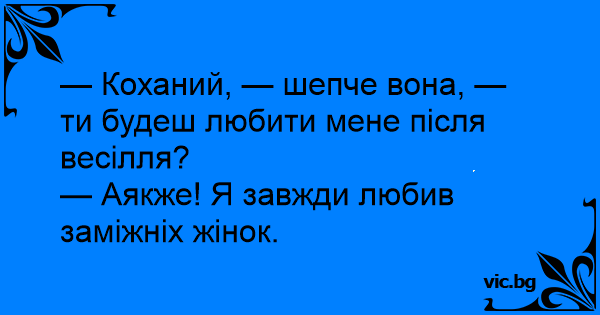 — Коханий, — шепче вона, — ти будеш любити мене після весілля?