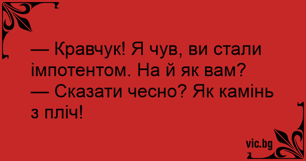 — Кравчук! Я чув, ви стали імпотентом. Hа й як вам?