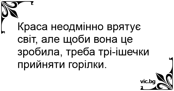 Краса неодмінно врятує світ, але щоби вона це зробила, треба трі-ішечки прийняти горілки.