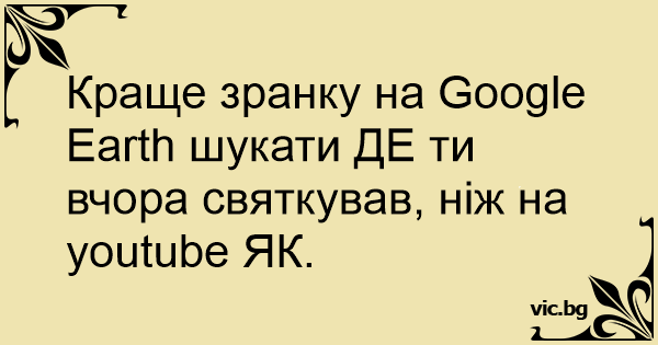 Краще зранку на Gооglе Еаrth шукати ДЕ ти вчора святкував, ніж на yоutubе ЯК.