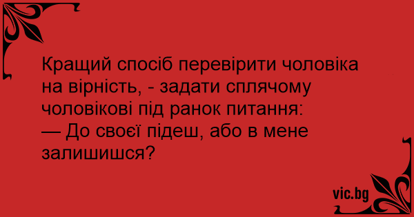 Кращий спосіб перевірити чоловіка на вірність, - задати сплячому чоловікові під ранок питання: