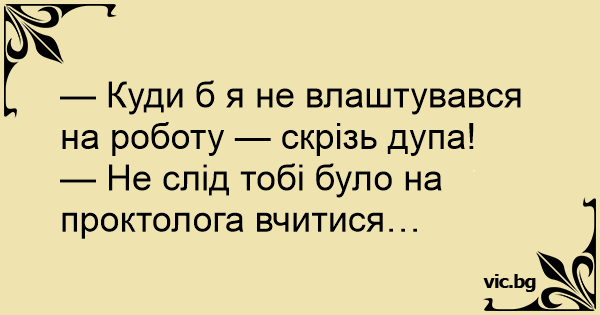 — Не слід тобі було на проктолога вчитися…