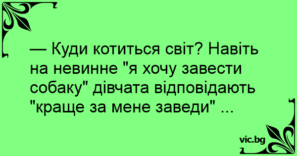— Куди котиться світ? Навіть на невинне "я хочу завести собаку" дівчата відповідають "краще за мене заведи" ...