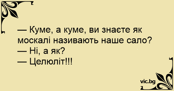 — Куме, а куме, ви знаєте як москалі називають наше сало?