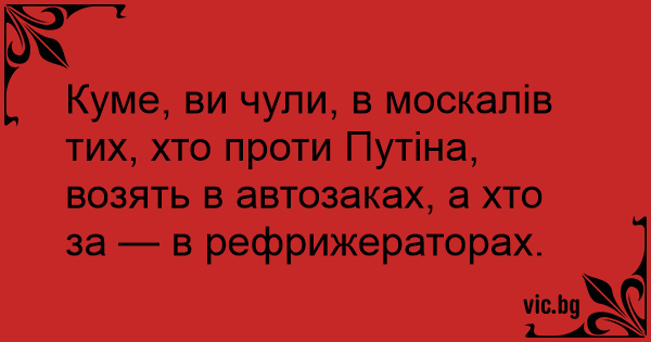 Куме, ви чули, в москалів тих, хто проти Путіна, возять в автозаках, а хто за — в рефрижераторах.