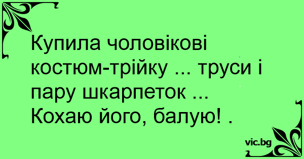 Купила чоловікові костюм-трійку ... труси і пару шкарпеток ... Кохаю його, балую! .