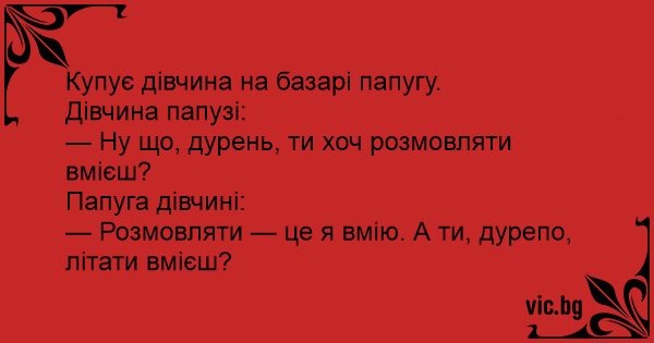 — Розмовляти — це я вмію. А ти, дурепо, літати вмієш?
