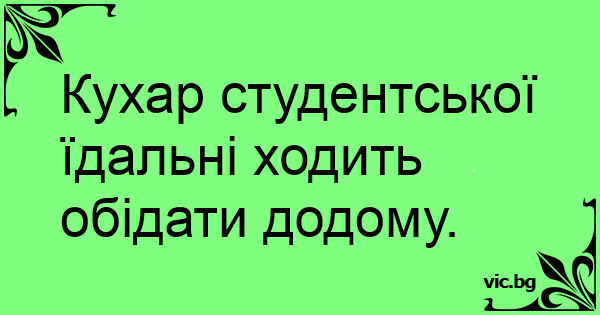 Кухар студентської їдальні ходить обідати додому.