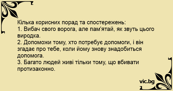 1. Вибач свого ворога, але пам'ятай, як звуть цього виродка.