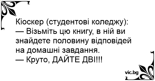 — Візьміть цю книгу, в ній ви знайдете половину відповідей на домашні завдання.
