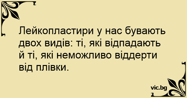 Лейкопластири у нас бувають двох видів: ті, які відпадають й ті, які неможливо віддерти від плівки.