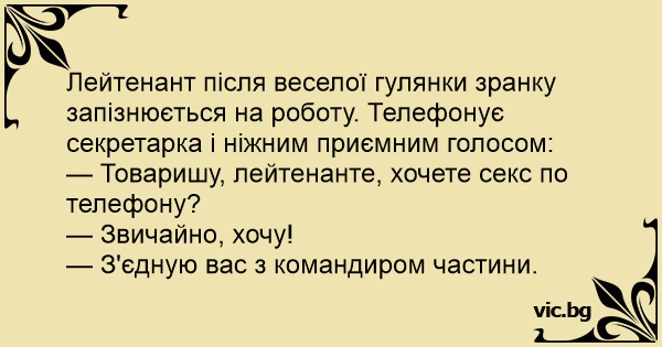 — Товаришу, лейтенанте, хочете cekc по телефону?