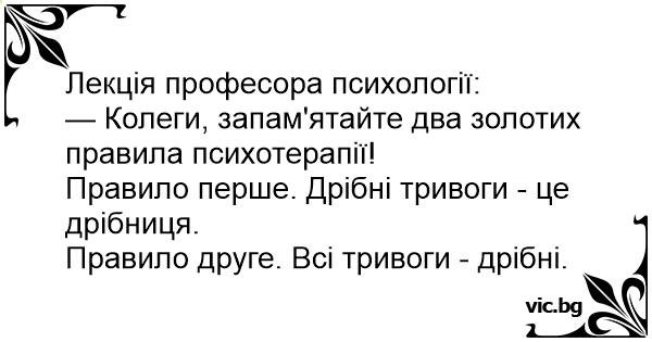 — Колеги, запам'ятайте два золотих правила психотерапії!