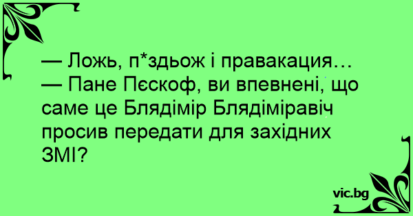 — Пане Пєскоф, ви впевнені, що саме це Блядімір Блядіміравіч просив передати для західних ЗМІ?