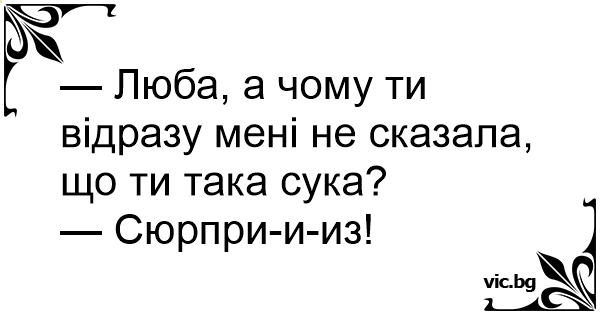 — Люба, а чому ти відразу мені не сказала, що ти така cуka?