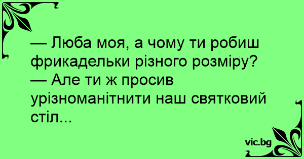— Люба моя, а чому ти робиш фрикадельки різного розміру?