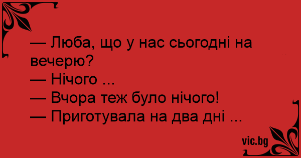 — Люба, що у нас сьогодні на вечерю?