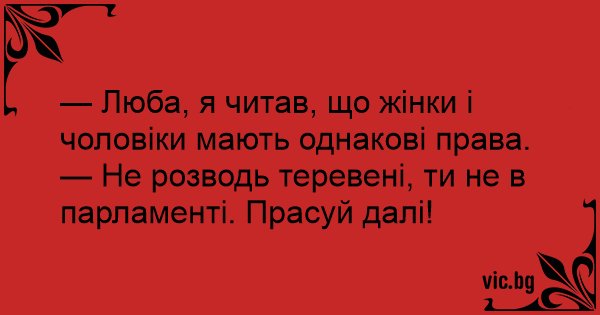 — Люба, я читав, що жінки і чоловіки мають однакові права.