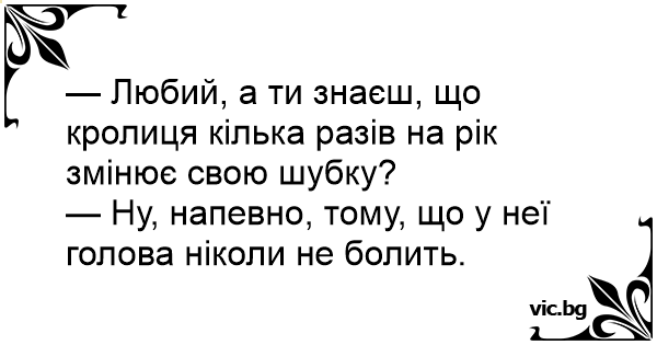 — Любий, а ти знаєш, що кролиця кілька разів на рік змінює свою шубку?