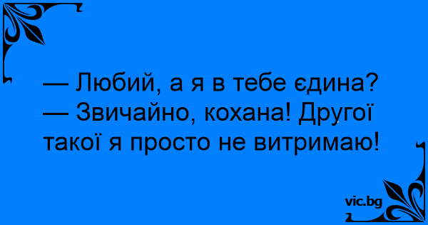— Звичайно, кохана! Другої такої я просто не витримаю!