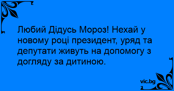 Любий Дідусь Мороз! Нехай у новому році президент, уряд та депутати живуть на допомогу з догляду за дитиною.