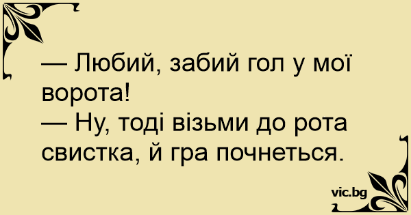 — Ну, тоді візьми до рота свистка, й гра почнеться.
